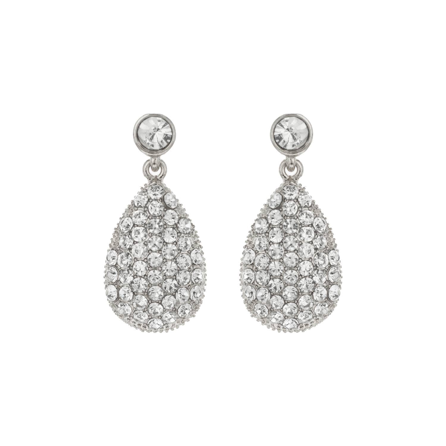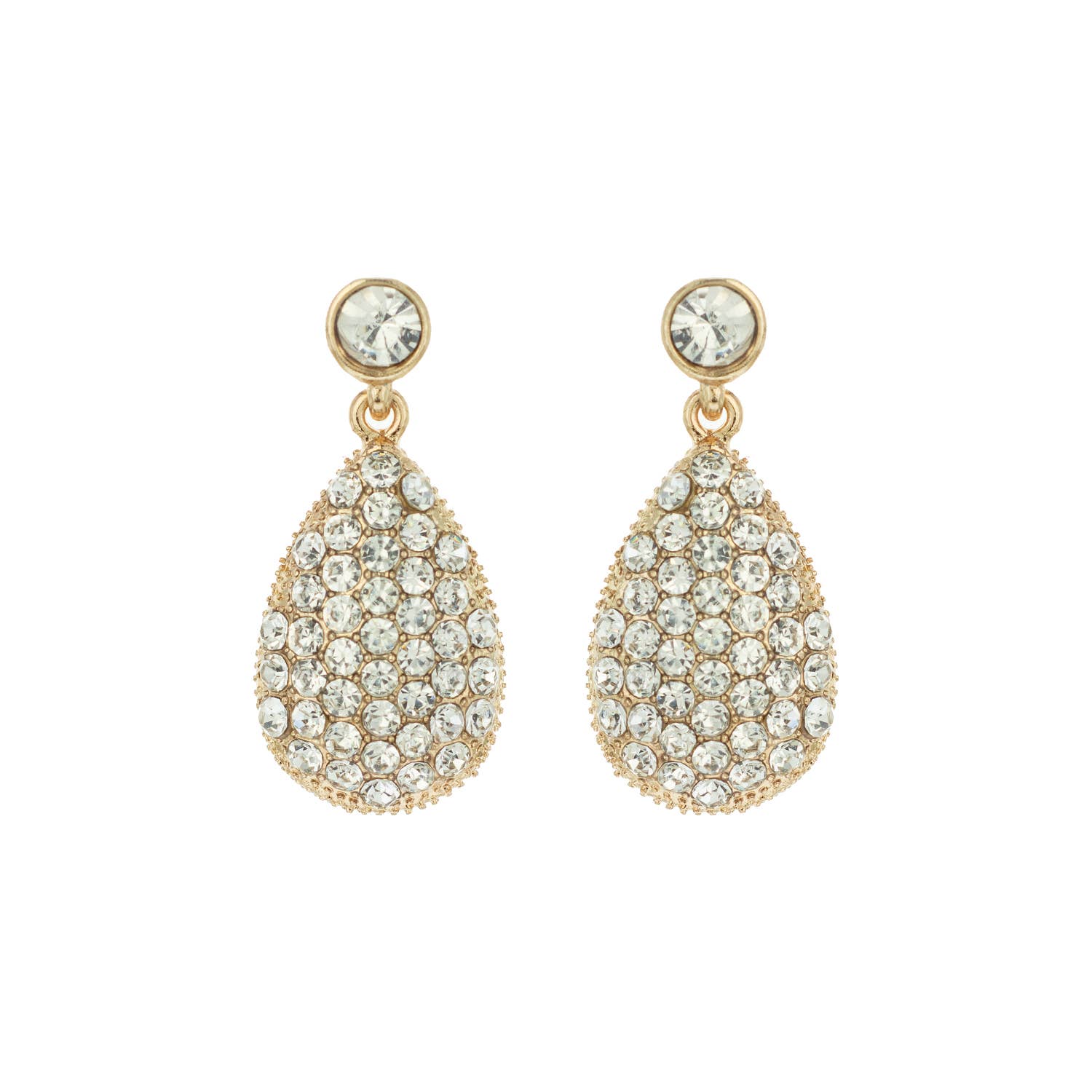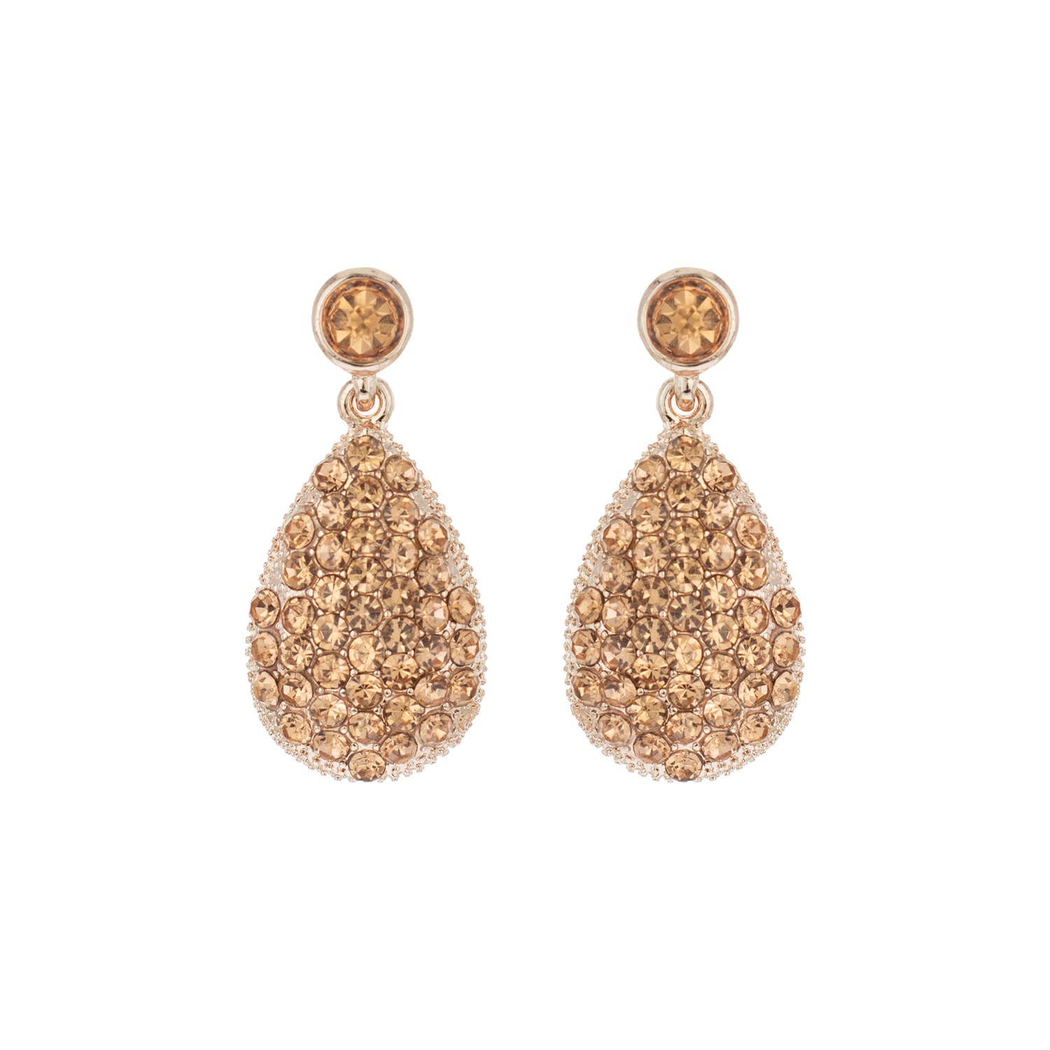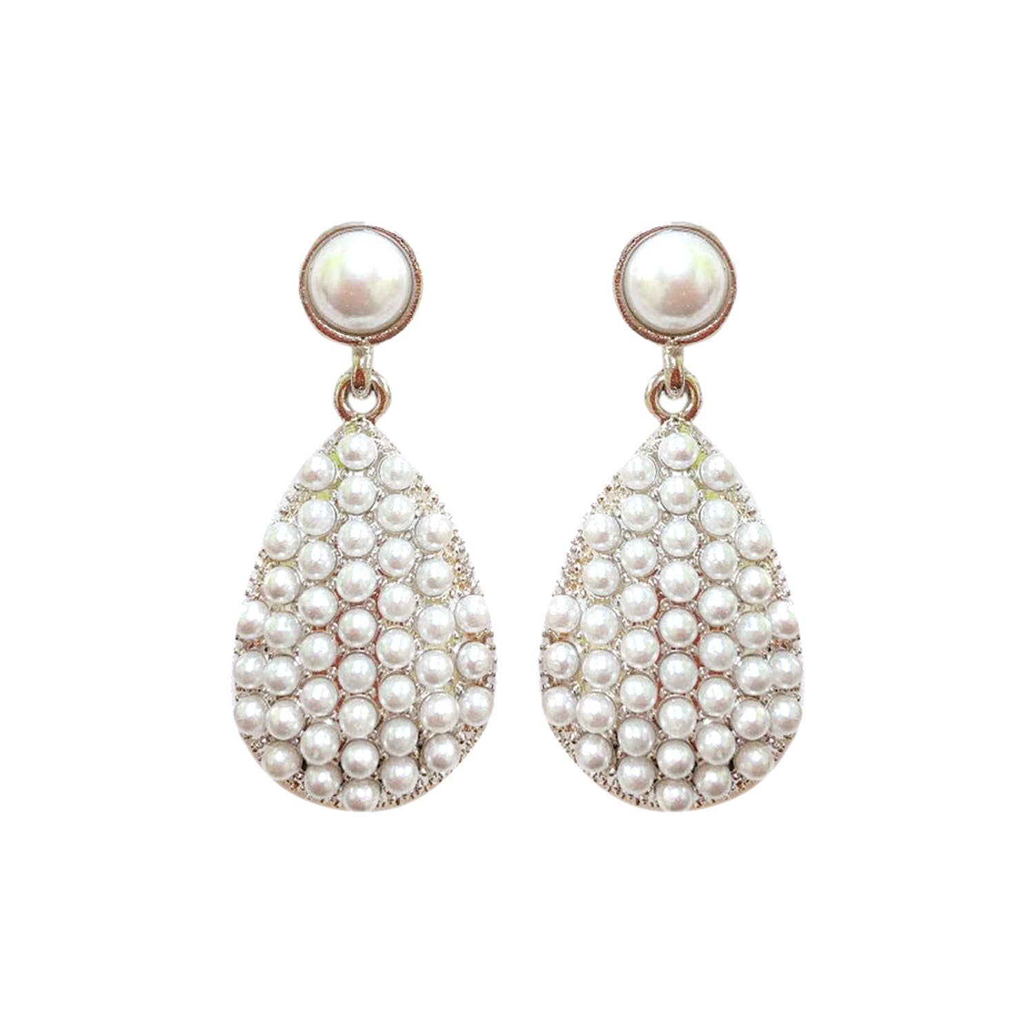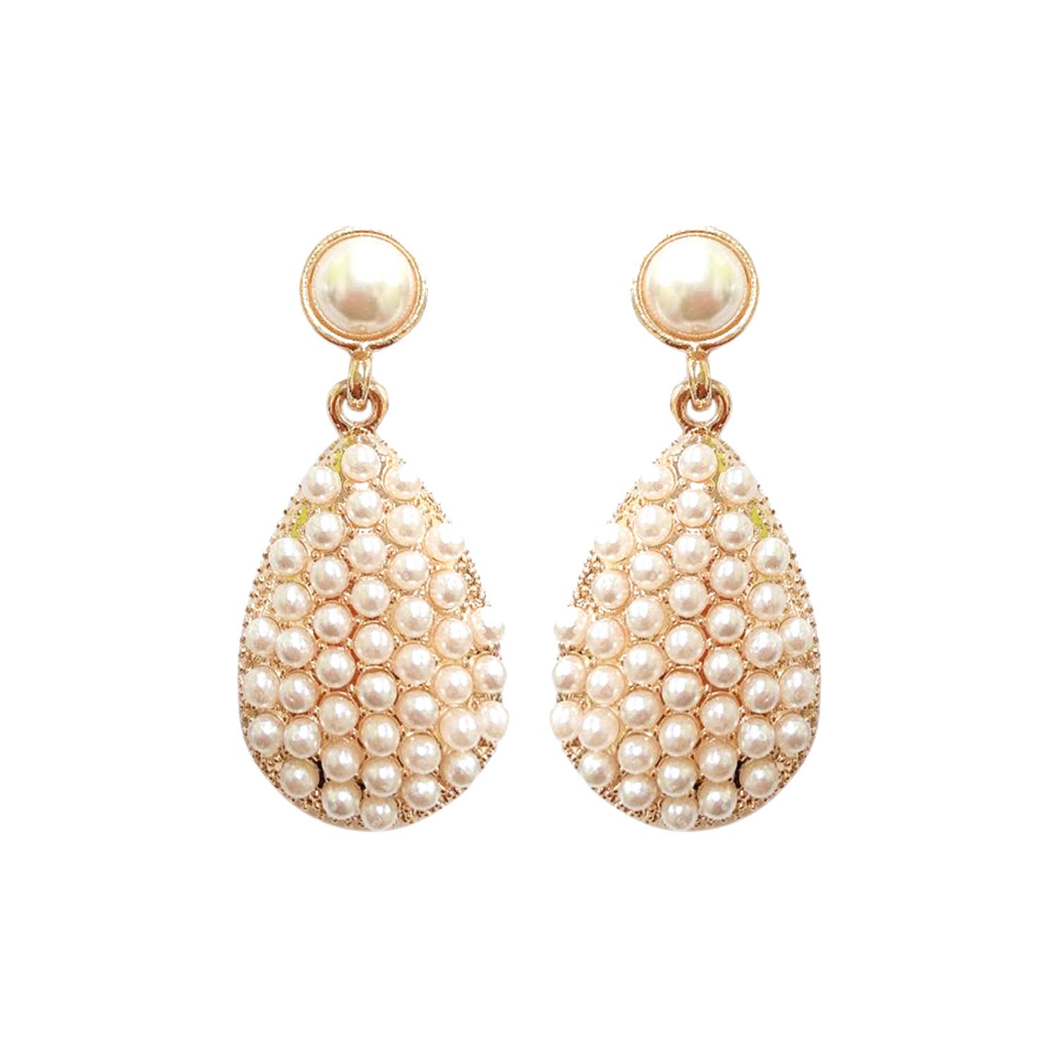 2-Tier Crystal Pave & Pearl Teardrop Drop Earrings: Champagne