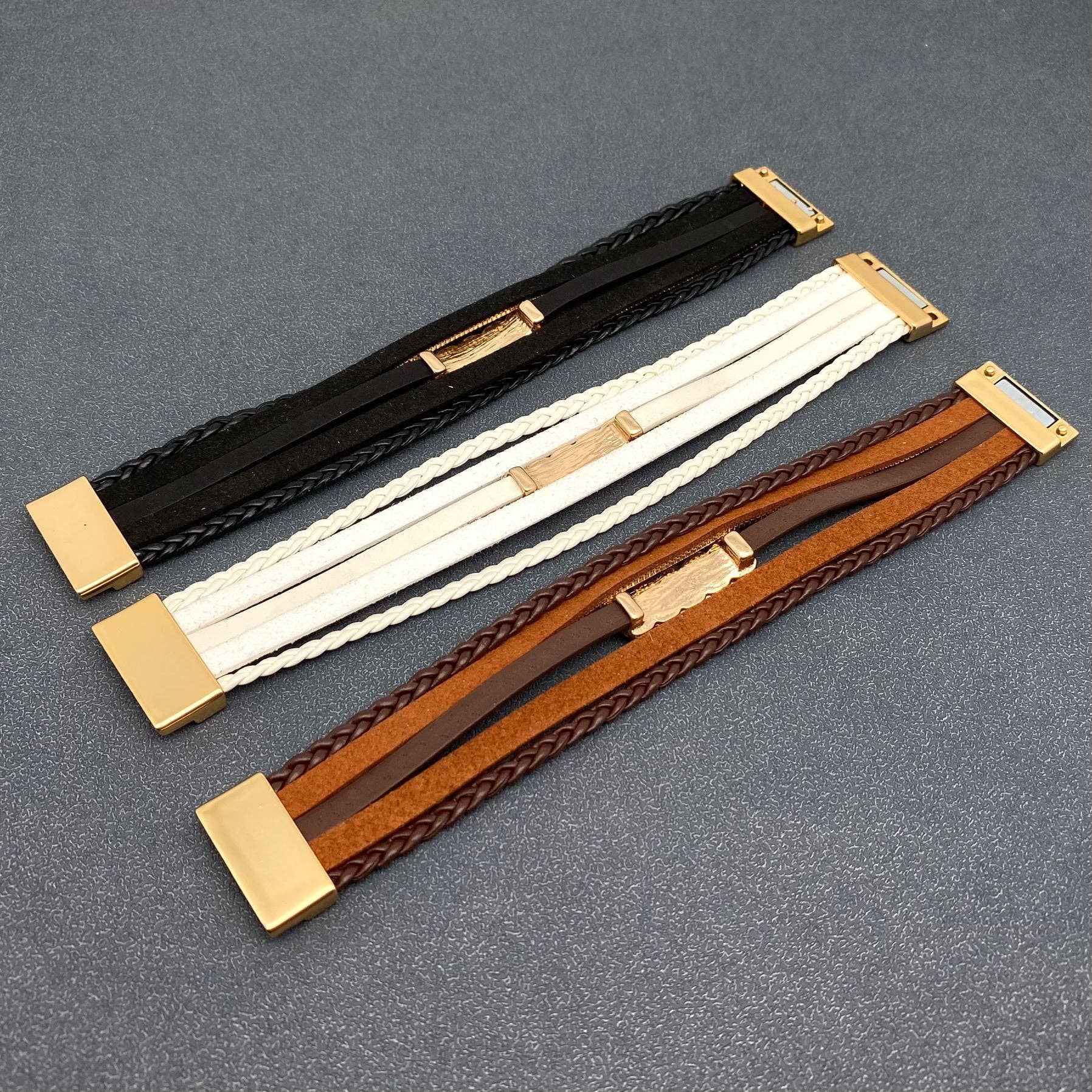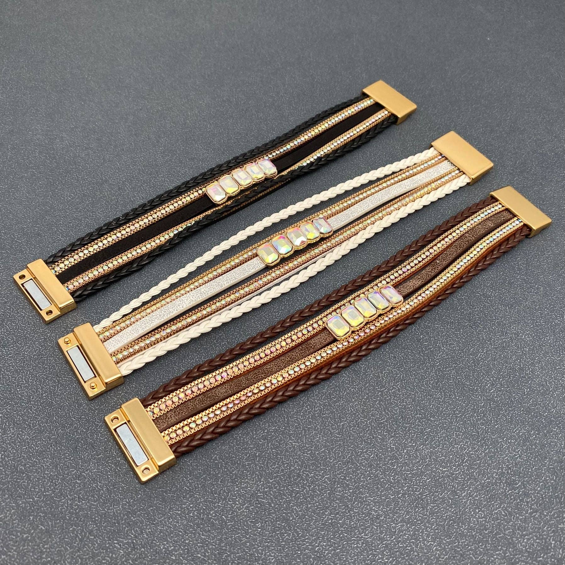 Boho Sparkling Rhinestone Multi-layer Leather Bracelet - LB: White