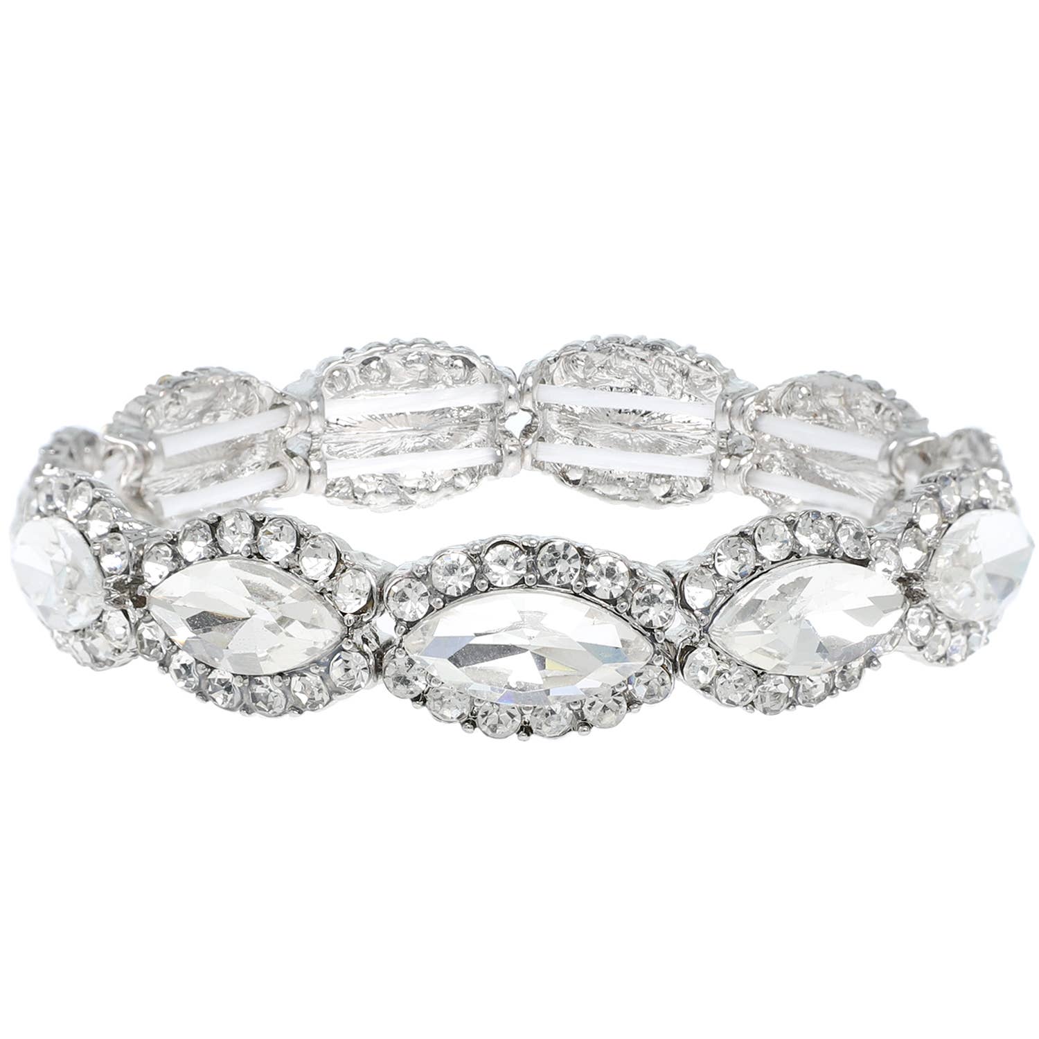 GEMSTONE CLUSTER PETAL CUT COCKTAIL FANCY ELEGANT STONE JEWELED GLAM EVENING DRESSY FORMAL PROM PARTY BRIDAL WEDDING BLING STATEMENT ONE SIZE JEWELRY BANGLE STRETCH BRACELET
