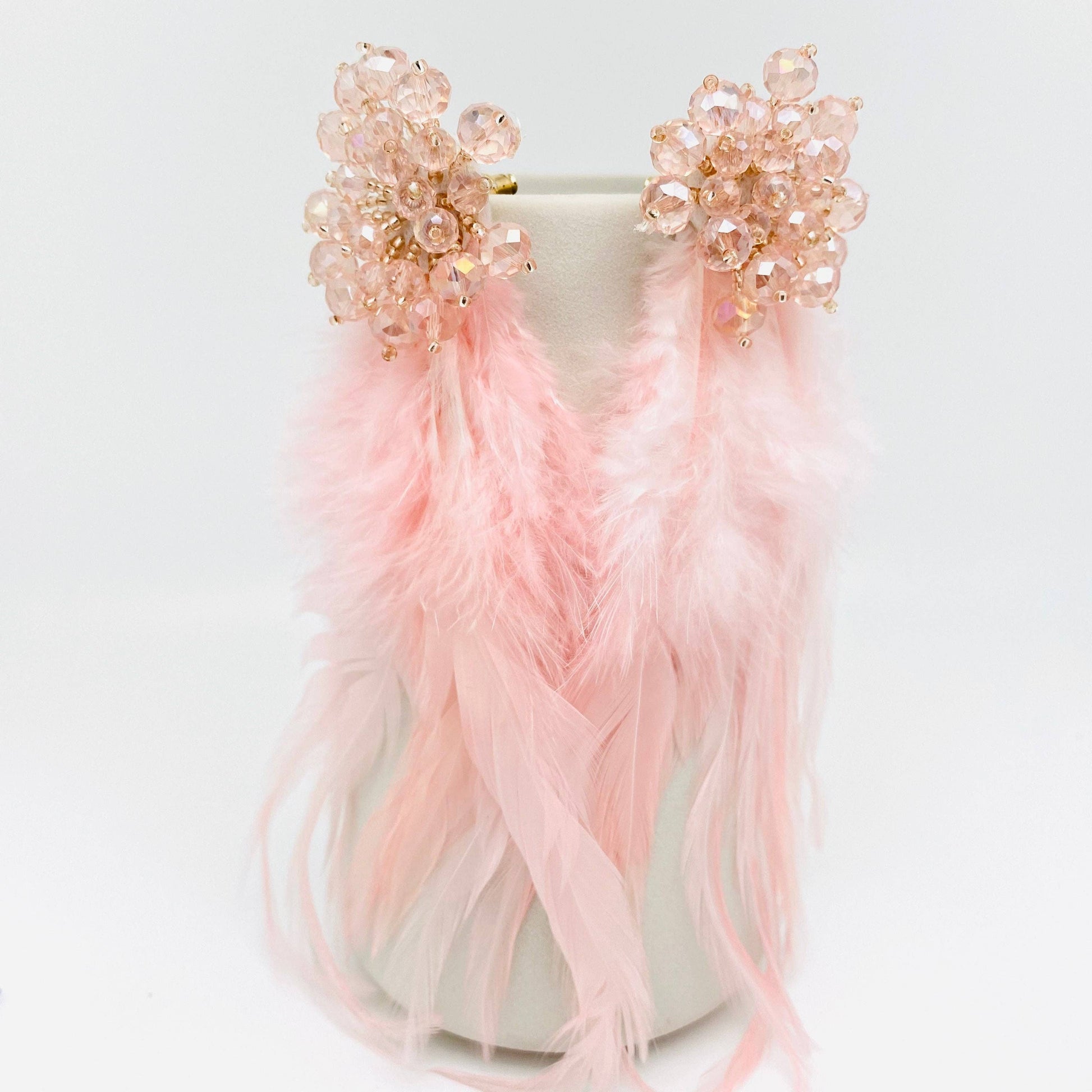 Hand-woven Flower-shaped Beaded Pink Feather Earrings: 2# Pink