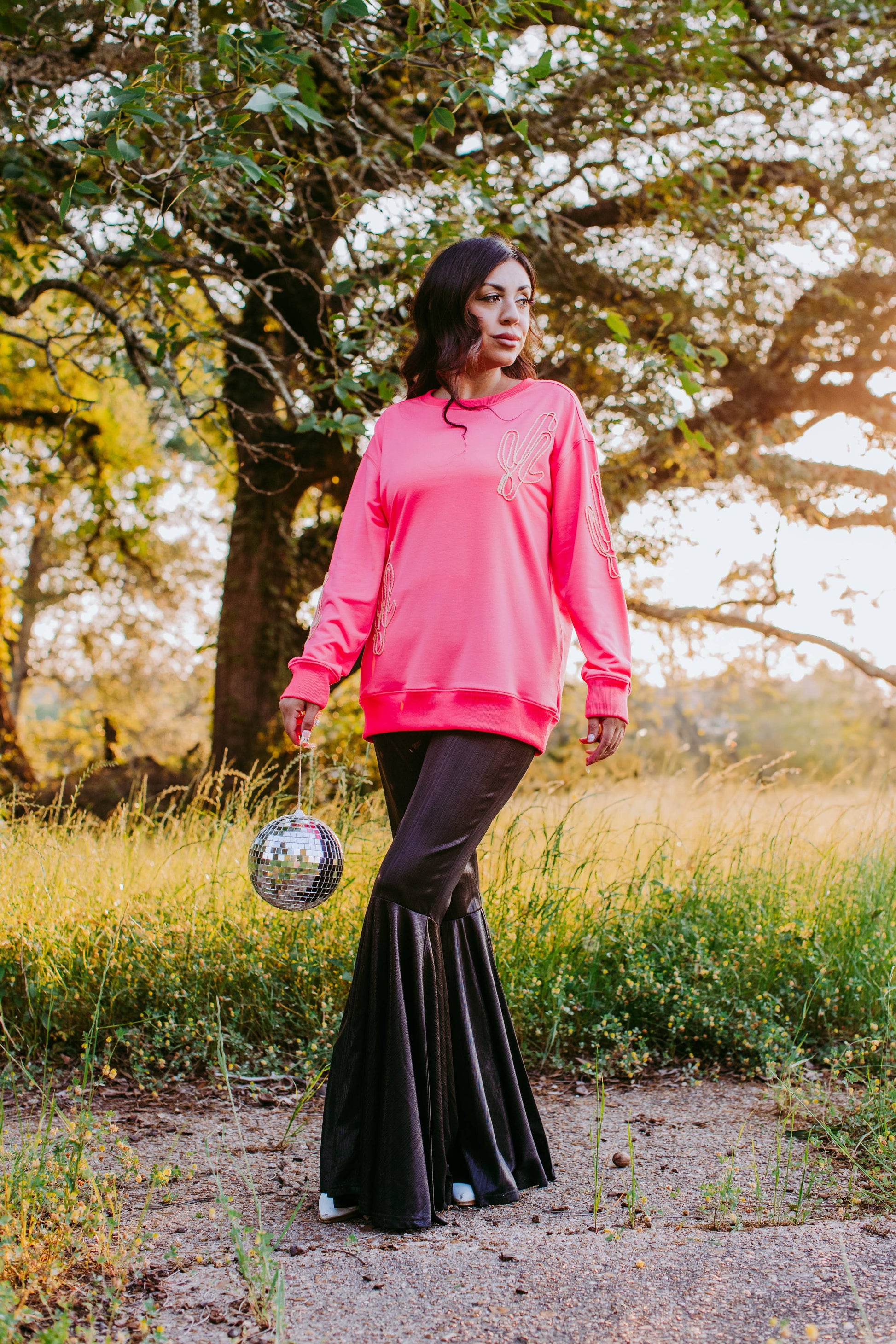 MK371 Cactus Line Embroidery Light Weight Sweatshirt Pink: Pink / S