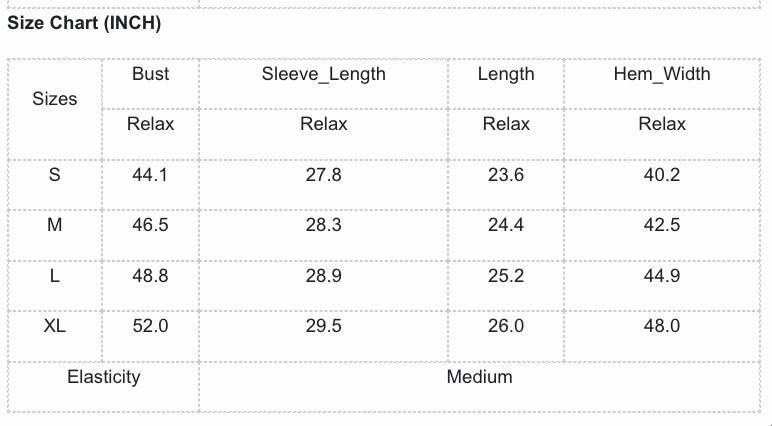 Size Info: