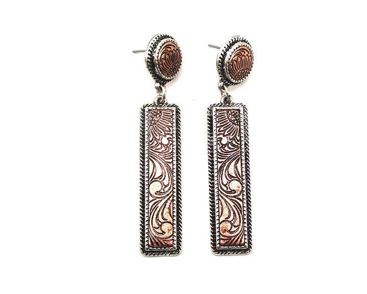 WESTERN BAR ENGRAVED DANGLE EARRINGS