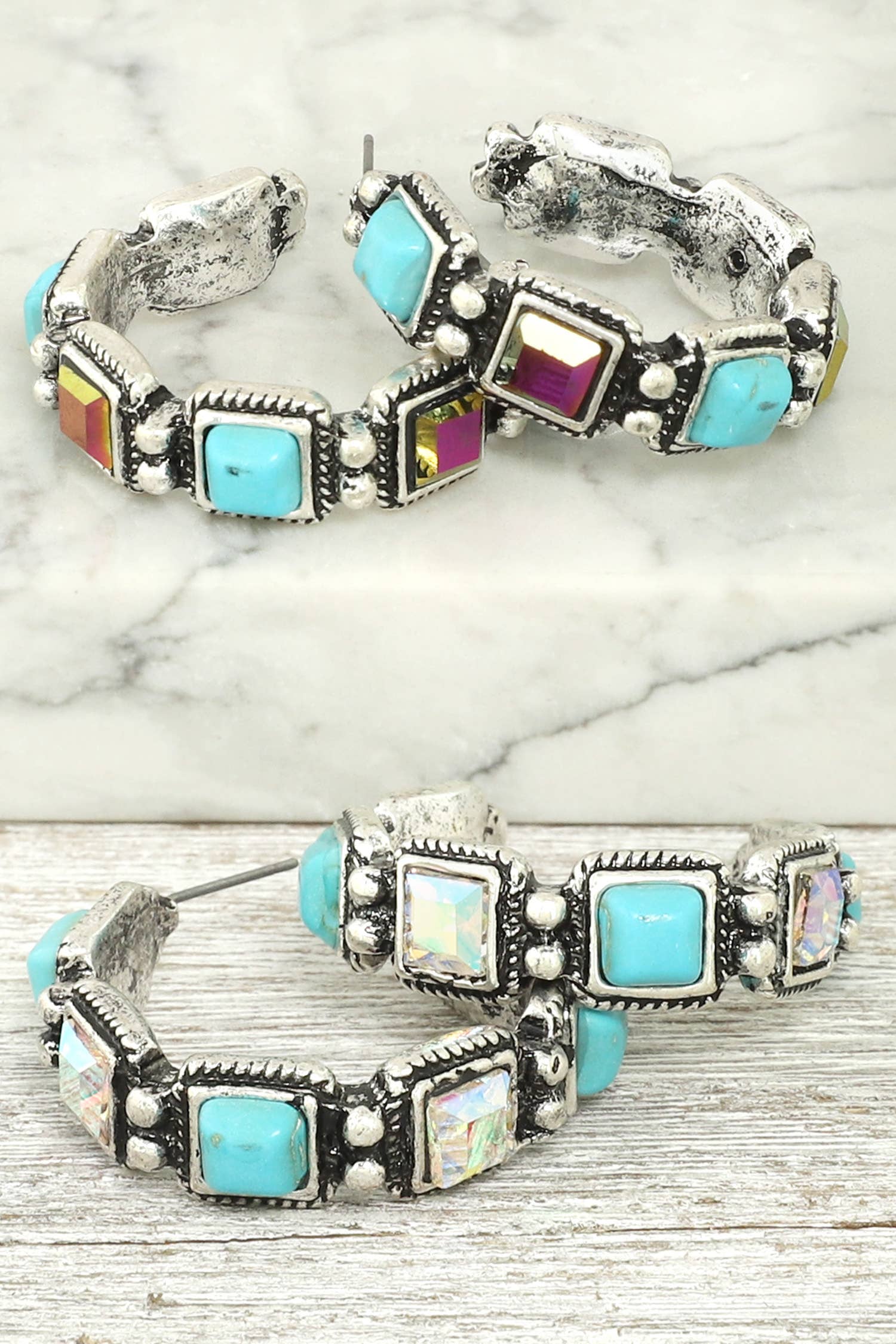 Western Crystal Turquoise Hoop Earrings : Iridescent