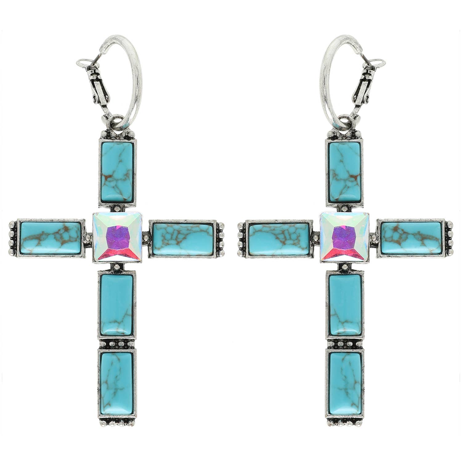 Western Gemstone Cross Hoop Earrings : Iridescent