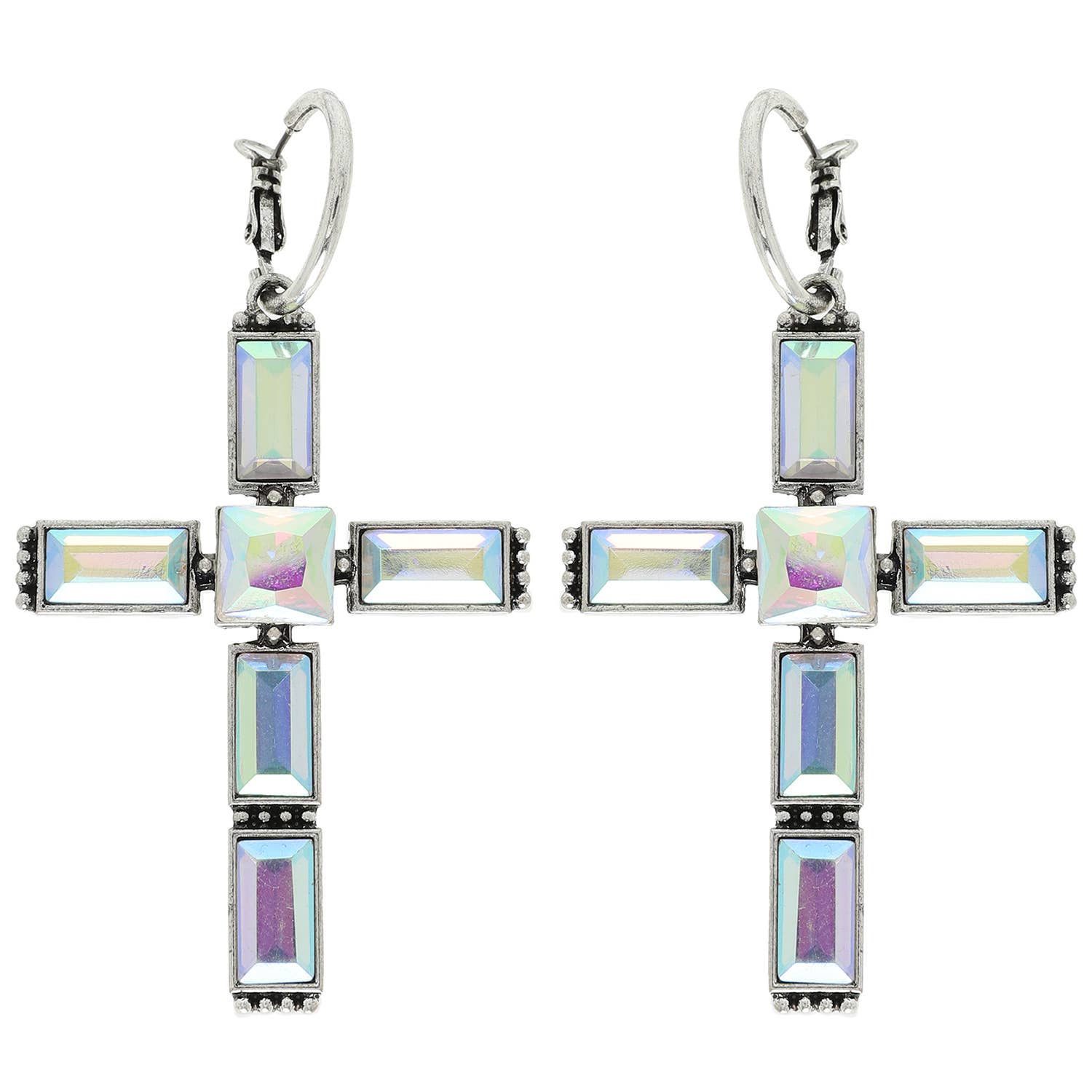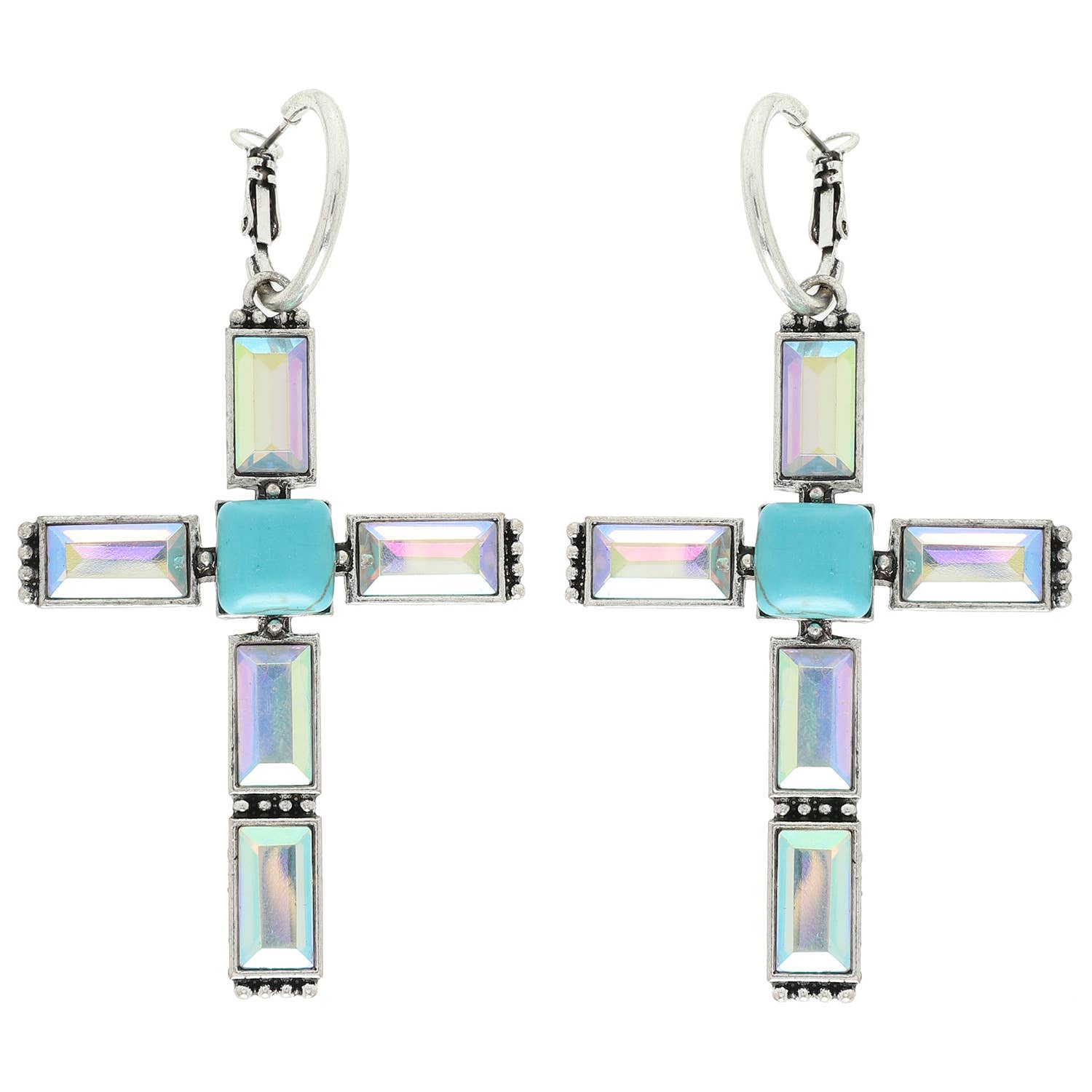 Western Gemstone Cross Hoop Earrings : Iridescent Turquoise