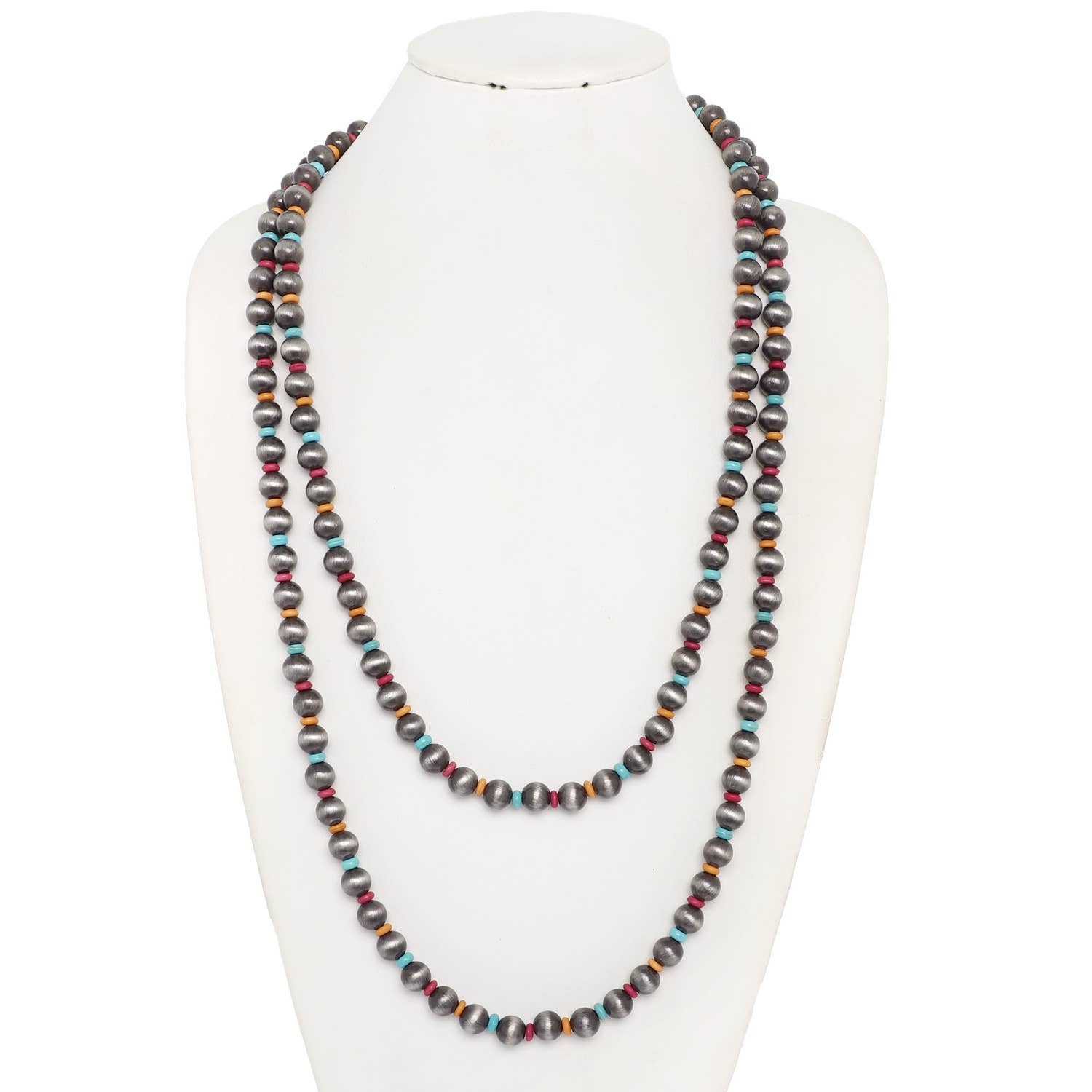 This Western Metallic Bead Wrap Necklace is expertly crafted to elevate your style. Made with quality materials and intricate metallic beadwork, it adds a touch of sophistication to any outfit. The wrap design allows for versatile wear and the perfect fit. Enhance your look with this stunning statement piece.