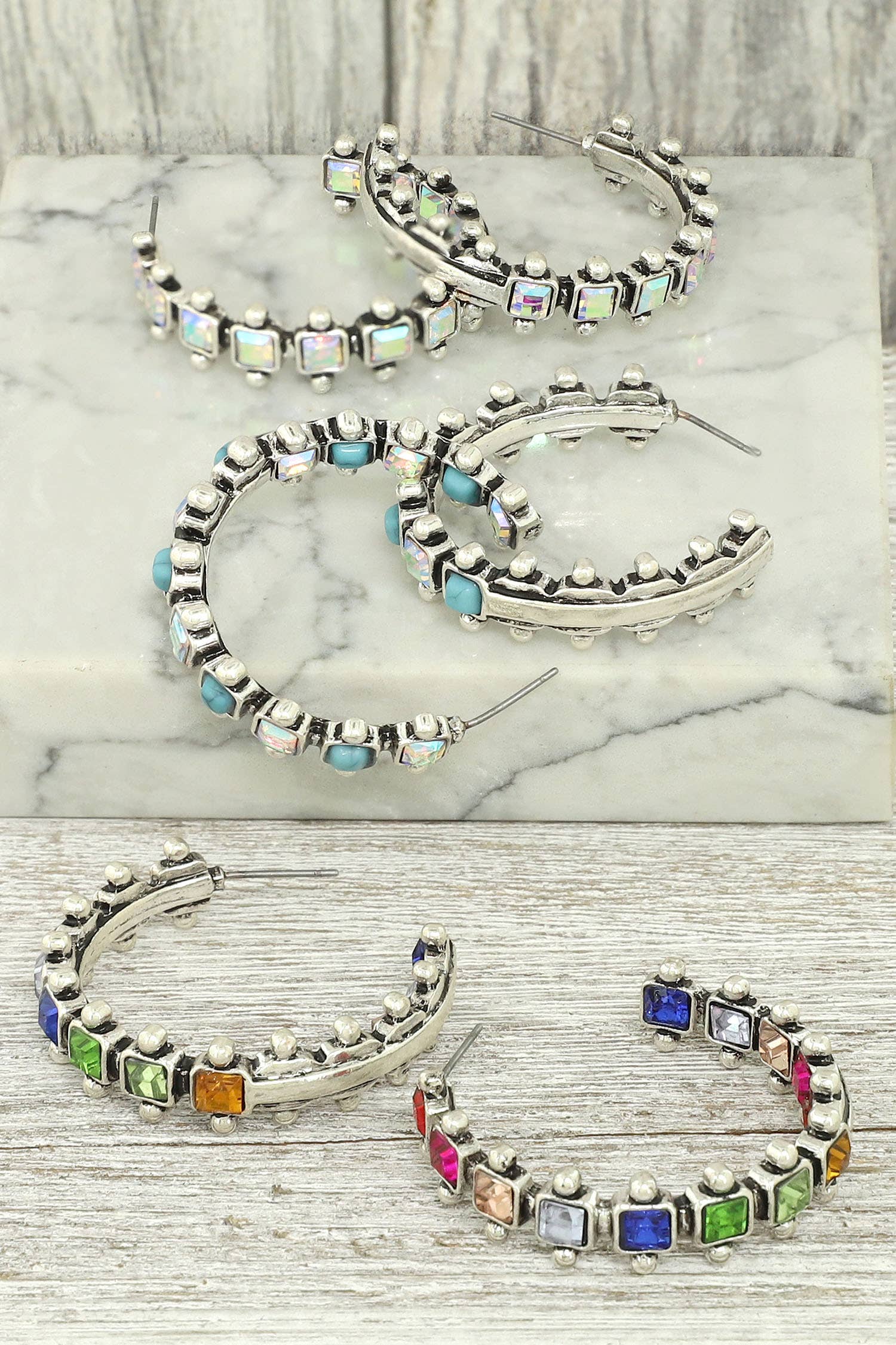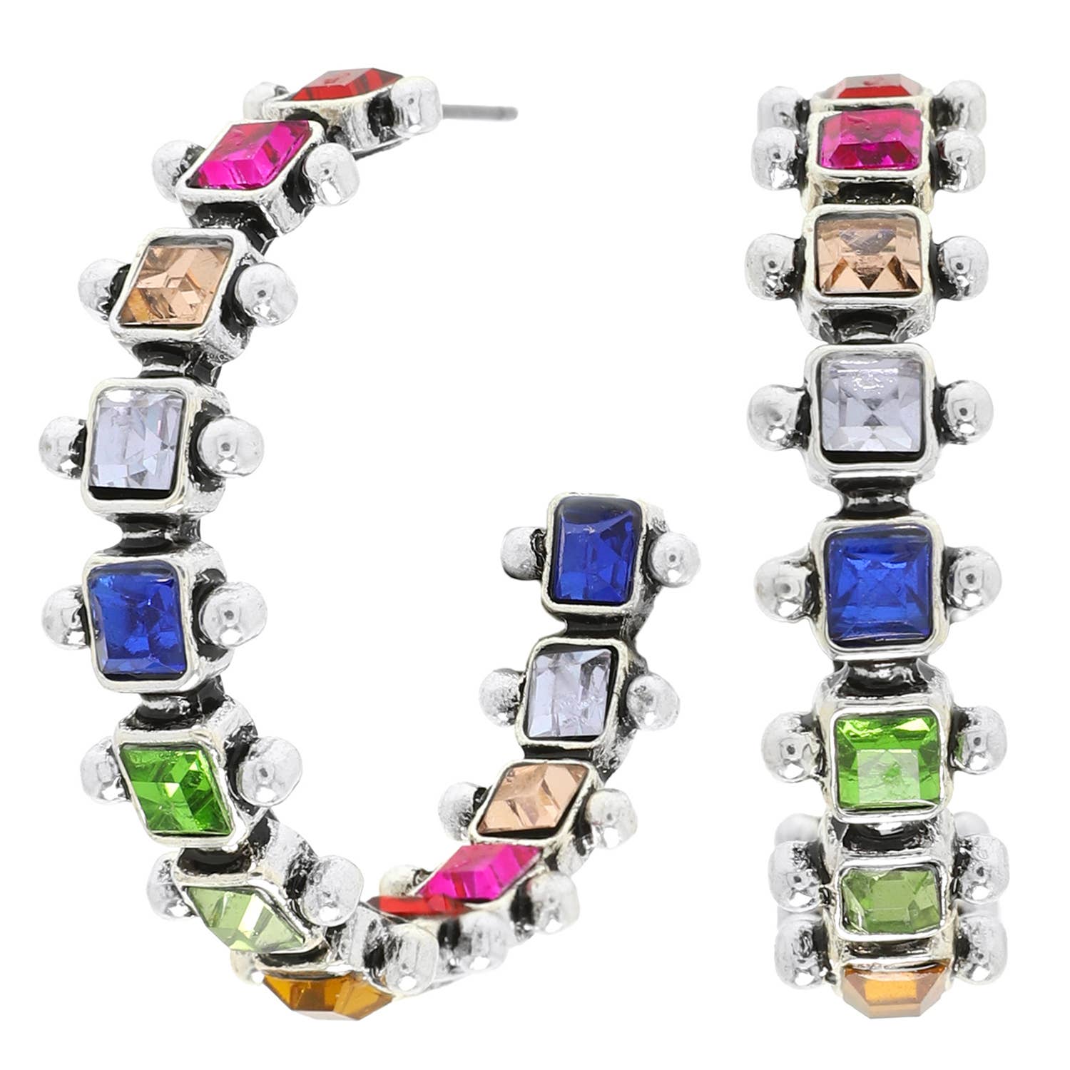 Western Square Cut Crystal Hoop Earrings : Iridescent